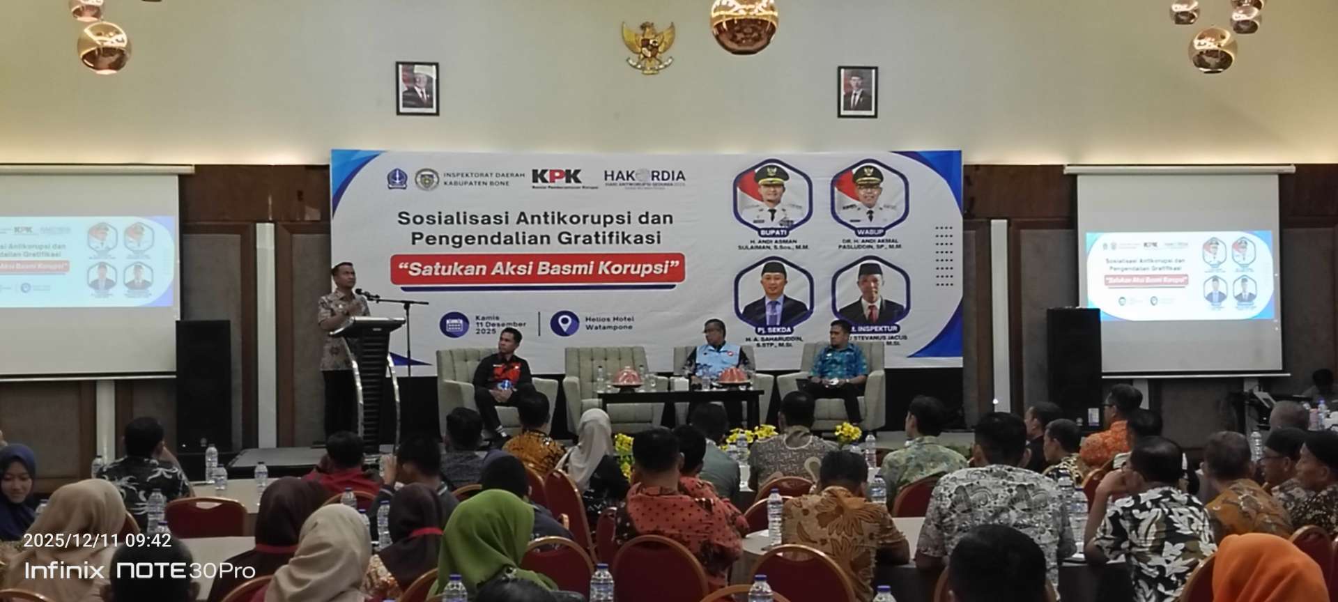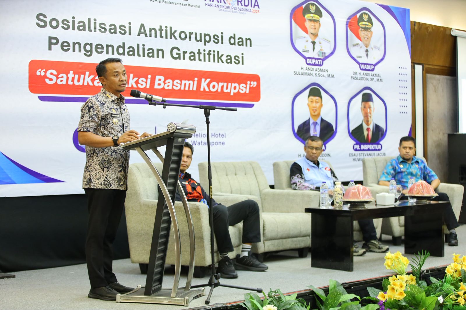 “Satukan Aksi Basmi Korupsi”. Acara yang berlangsung di Hotel Helios Watampone ini dihadiri pimpinan OPD, sekretaris dinas, camat hingga sekretaris kecamatan, Kamis (11/12/ 2025.)