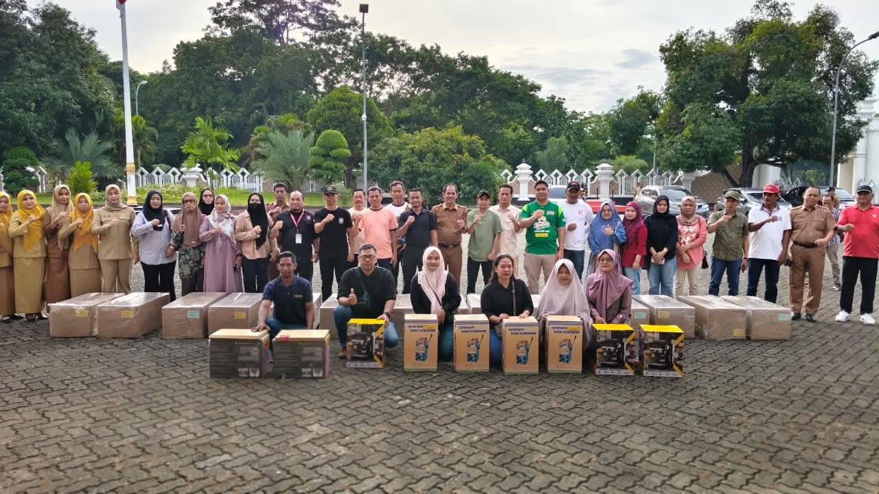 Bupati Bone, H. Andi Asman Sulaiman, S.Sos., M.M., didampingi Kepala Dinas Koperasi dan UKM Kabupaten Bone, Hamzah Sunusi, S.Sos., M.Si., secara langsung menyerahkan Bantuan Peralatan Usaha Mikro, Kecil, dan Menengah (UMKM).