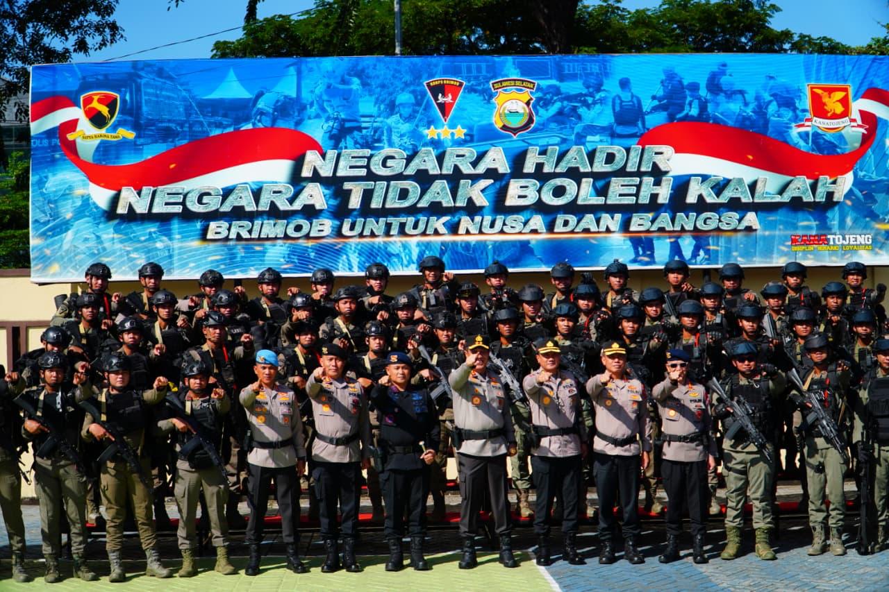 Sebanyak 34 personel Satbrimob Polda Sulsel dan 30 personel Pasukan Brimob II Korbrimob Polri yang akan melaksanakan tugas operasi Amole mengikuti apel pemberangkatan.