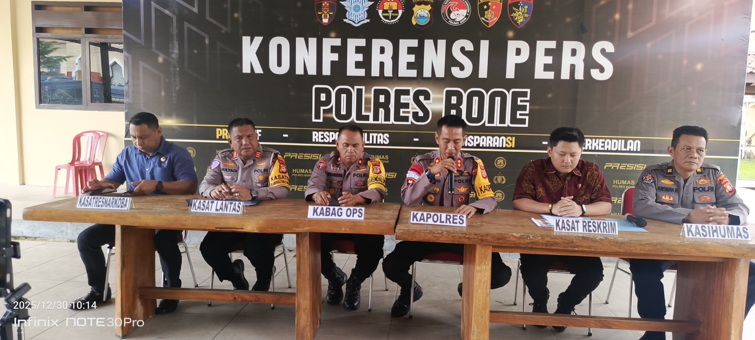 “Kami tidak akan segan menindak tegas setiap pelanggaran sesuai SOP, khususnya terkait konsumsi miras,” tegas Kompol Burhanuddin. Selasa 30/12/2025. pada saat konferensi pers.