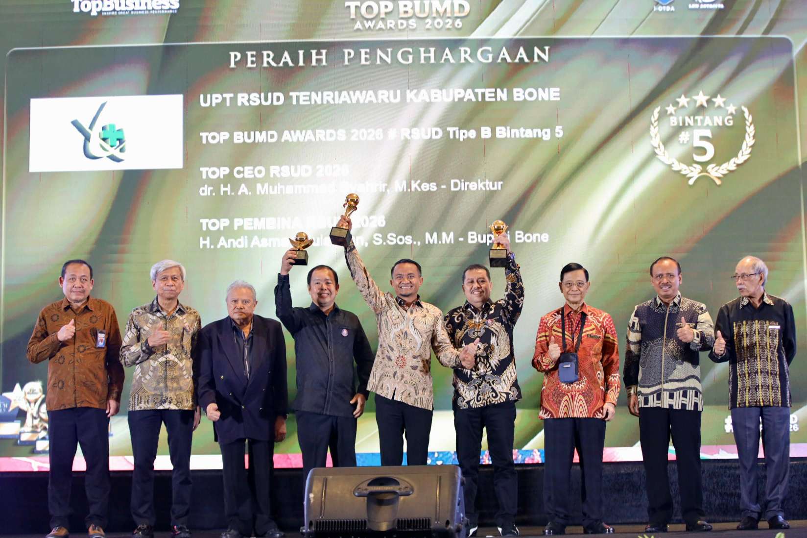 Bupati Bone, H. Andi Asman Sulaiman, S.Sos., M.M., berhasil meraih penghargaan bergengsi atas kepemimpinannya dalam mendorong kemajuan Badan Usaha Milik Daerah (BUMD).