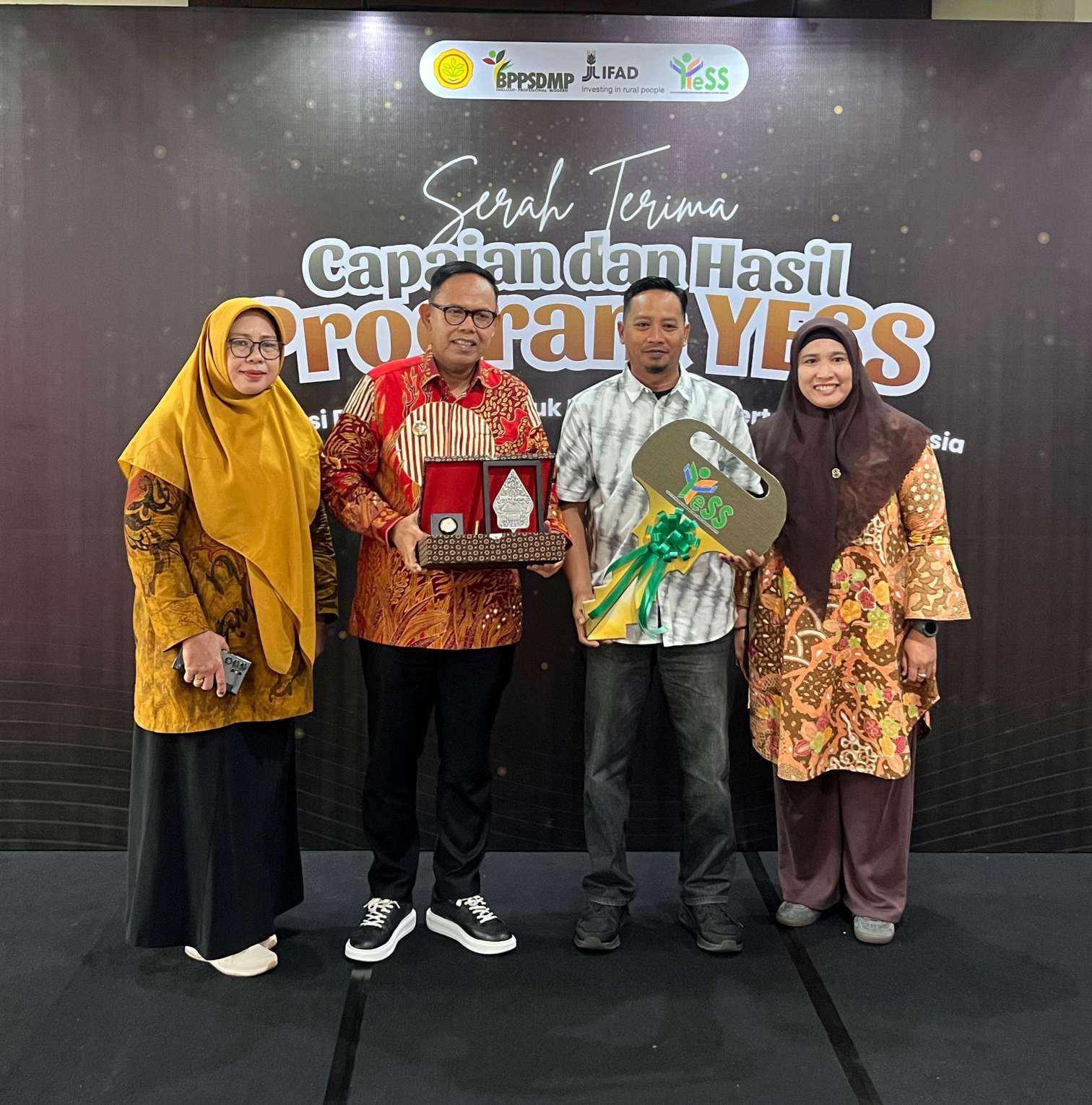 Selain itu, dilakukan penyerahan resmi hasil dan capaian Program YESS dari Badan Penyuluhan dan Pengembangan Sumber Daya Manusia Pertanian (BPPSDMP) kepada Bappenas Republik Indonesia, Kementerian Keuangan, serta 19 perwakilan daerah wilayah YESS.