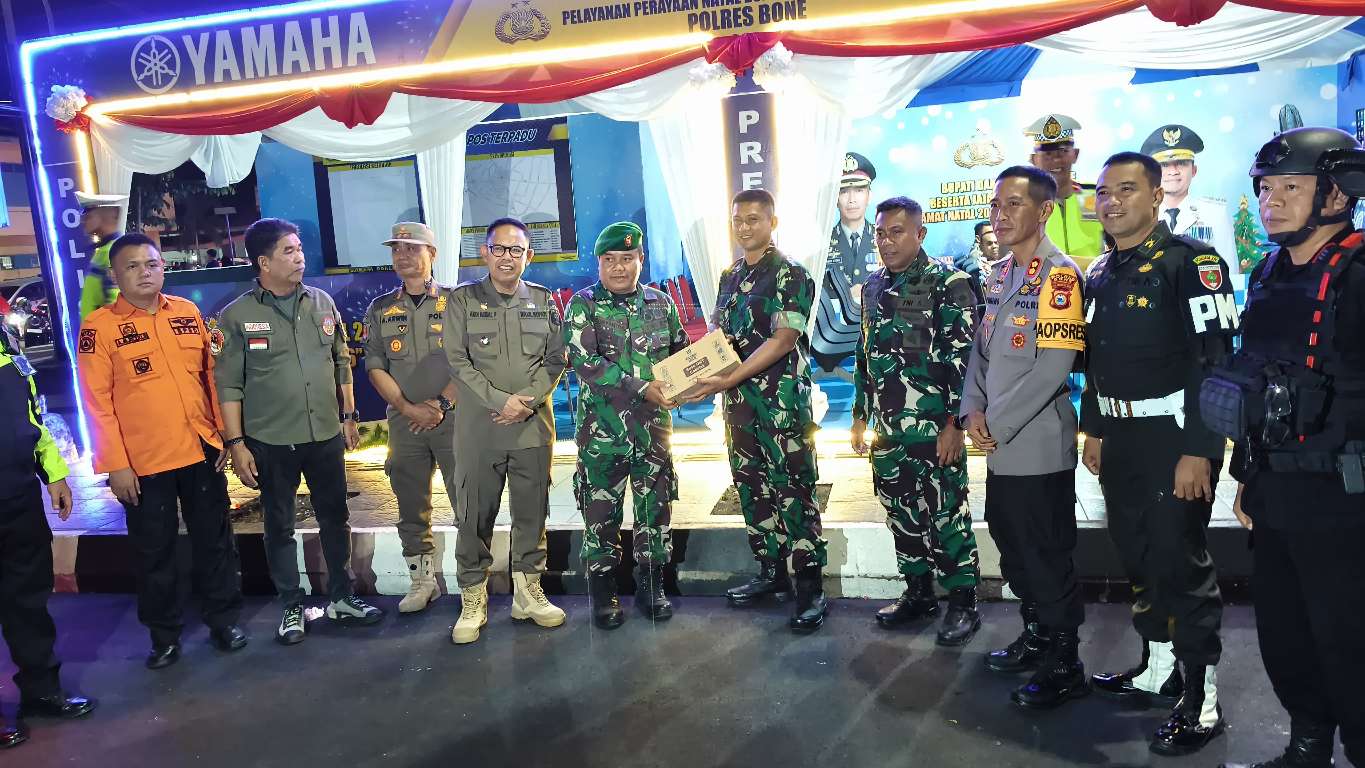 Sebagai bentuk dukungan moril, Wakil Bupati Bone bersama Forkopimda juga membagikan paket sembako kepada petugas yang berjaga di Pos PAM Nataru.